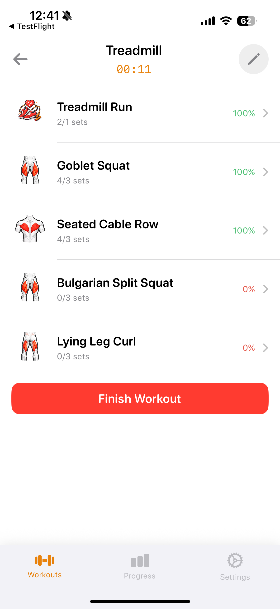 * Create workouts with exercises from a built-in library of strength and cardio movements